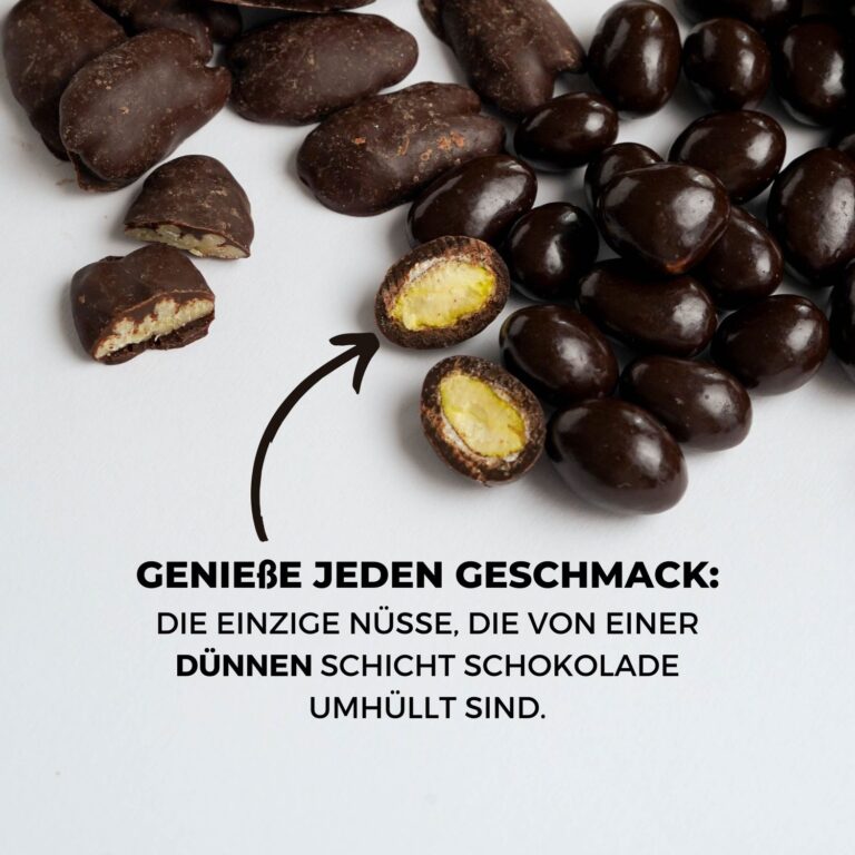 Übrigens… wir haben noch andere Nüsse mit Schokoladenüberzug kreiert. Schau sie dir doch mal an: Schoko-Haselnüsse, Schoko-Mandeln, Schoko-Walnüsse und Schoko-Pekannüsse.